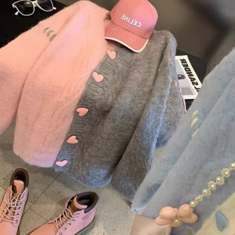 ▫️グレー×ピンクハートニットカーディガン