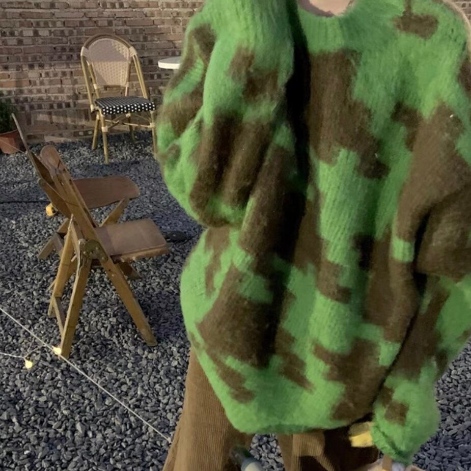NT-0276 グリーン 柄 ニット トップス 長袖 レディース カジュアル シンプル 可愛い お洒落 きれいめ