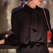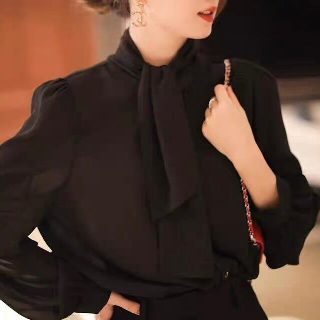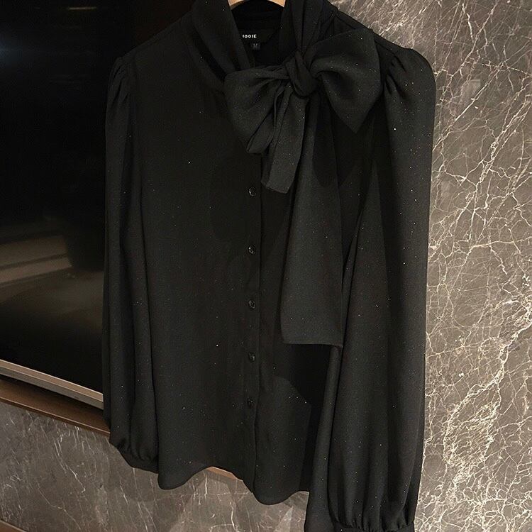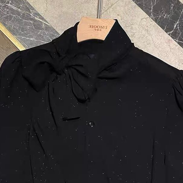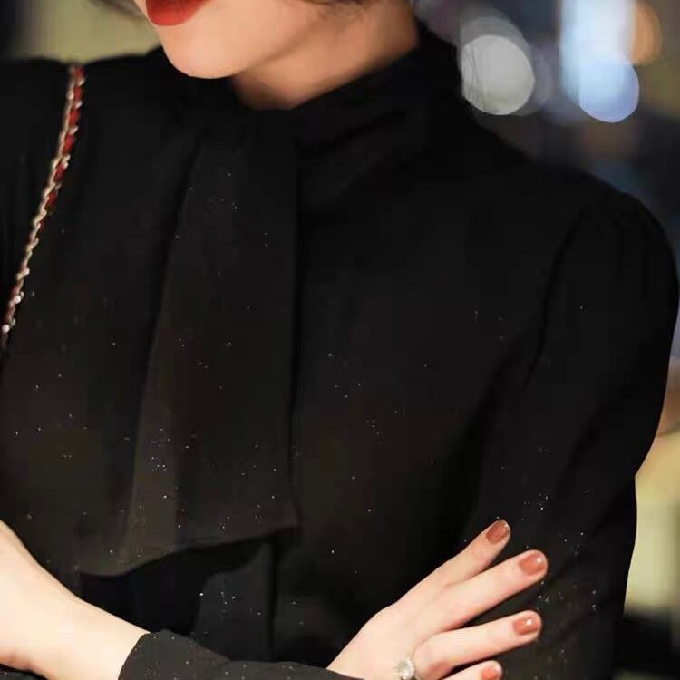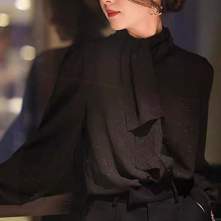 BL-0088 ハイネック ボウタイ キラキラ ブラウス フォーマル 長袖 レディース カジュアル シンプル 可愛い お洒落 きれい