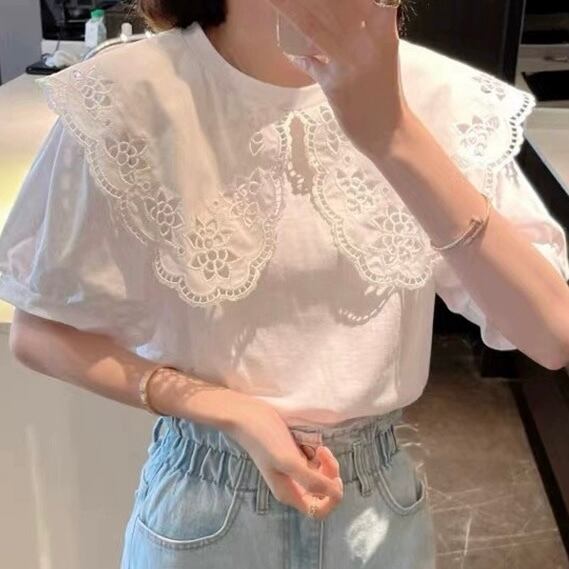 TS-0148 襟つき ラウンドネック 半袖 Tシャツ トップス レディース カジュアル シンプル 可愛い お洒落 きれいめ トップス