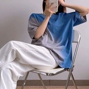 TS-0181 グラデーション ブルー グレー オーバー 半袖 Tシャツ トップス レディース カジュアル シンプル 可愛い お洒落 きれいめ