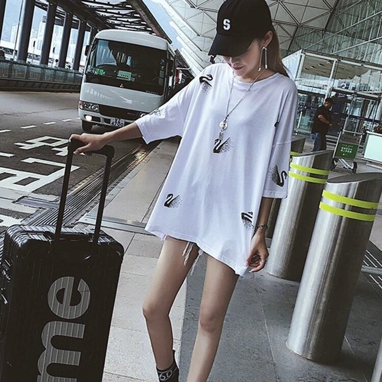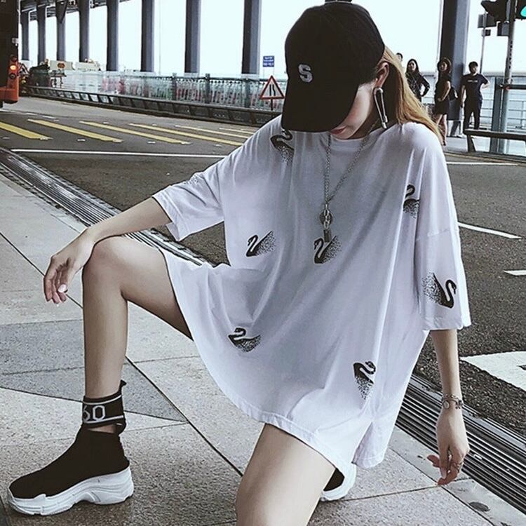 TS-0187 白鳥 ホワイト ルーズ 半袖 Tシャツ トップス レディース カジュアル シンプル 可愛い お洒落 きれいめ