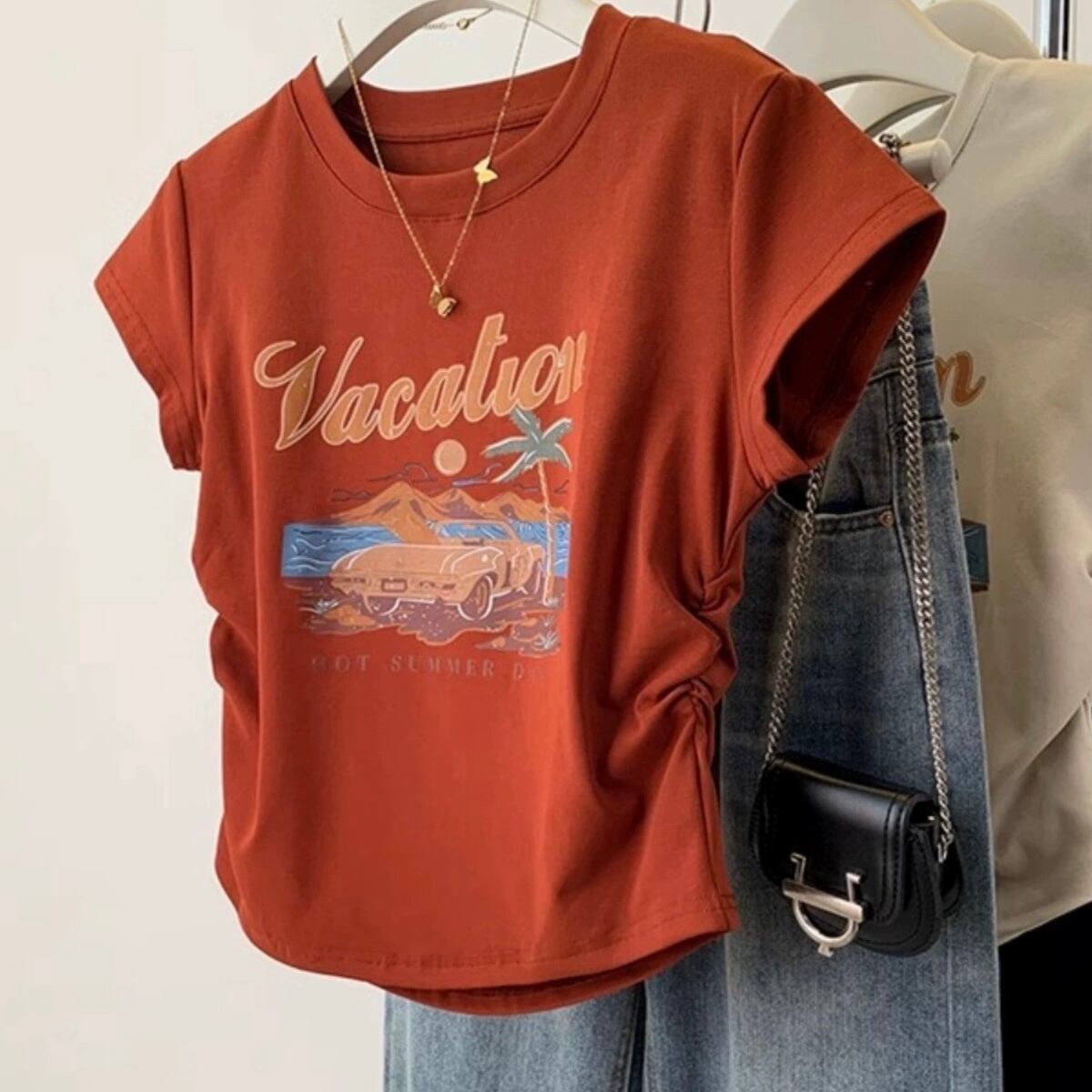TS-0192 サマー プリント 半袖 Tシャツ トップス レディース カジュアル シンプル 可愛い お洒落 きれいめ