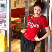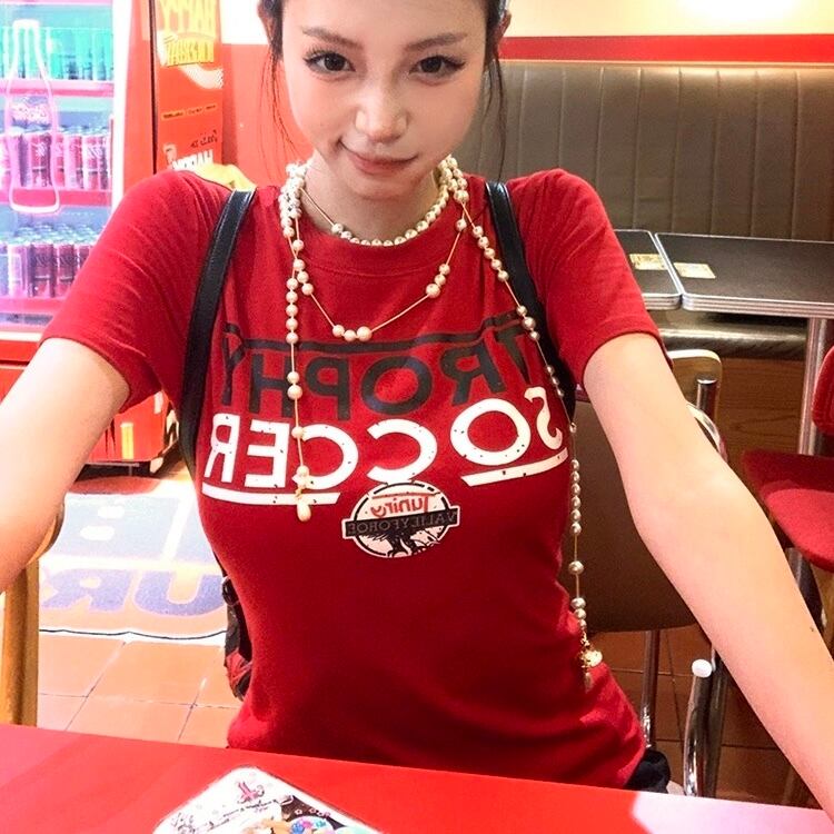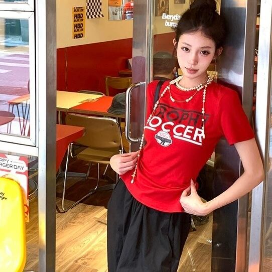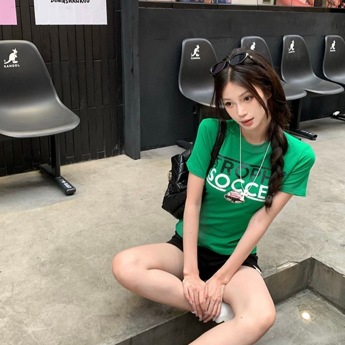 TS-0202 半袖 レタリング プリント タイト Tシャツ トップス レディース カジュアル シンプル 可愛い お洒落 きれいめ