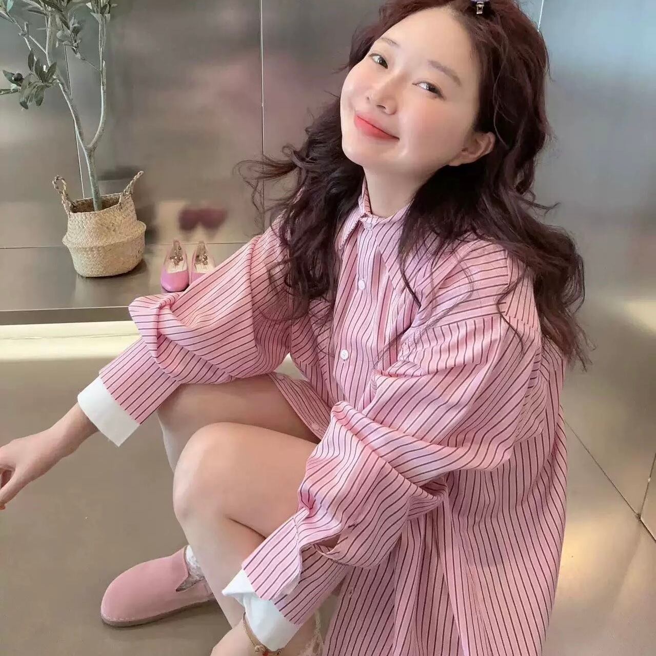 BL-0131 パステルピンク ストライプ 長袖 シャツ トップス レディース カジュアル シンプル 可愛い お洒落 きれいめ