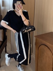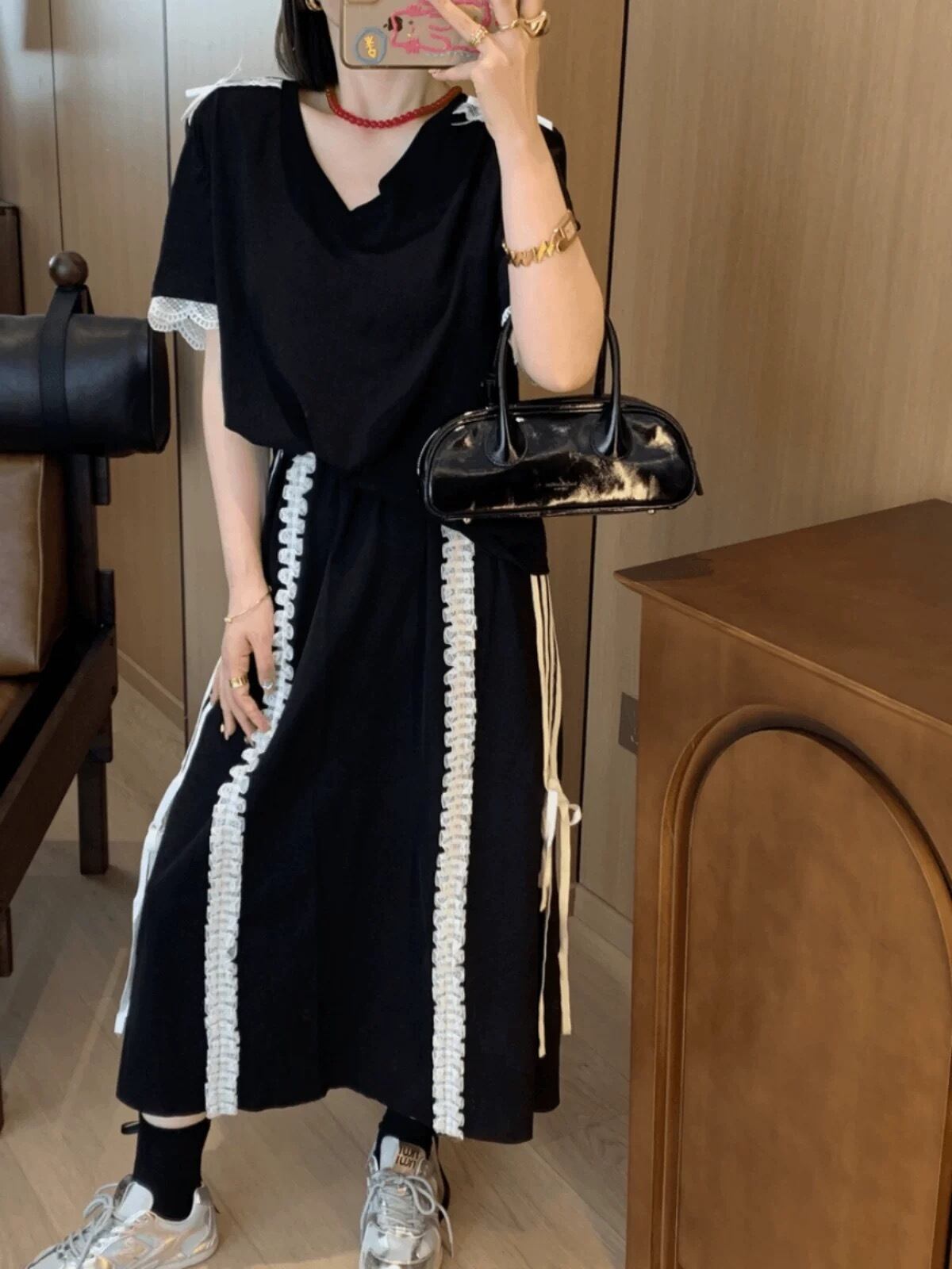SK-0047 レース リボン モノトーン スカート ロング丈 レディース カジュアル シンプル 可愛い お洒落 きれいめ