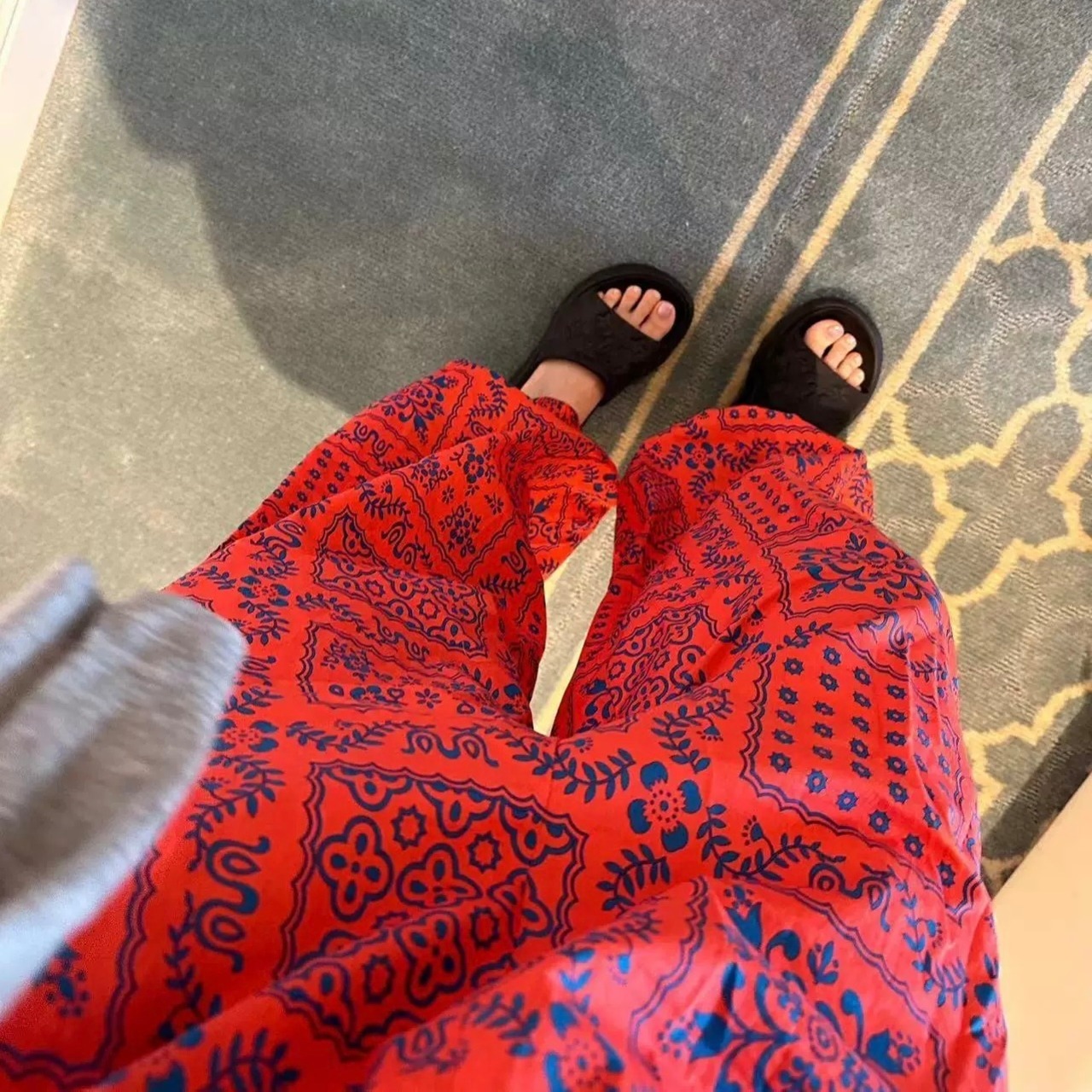 PT-0086 ペイズリー風 フラワー 柄 パンツ レディース カジュアル シンプル 可愛い お洒落 きれいめ