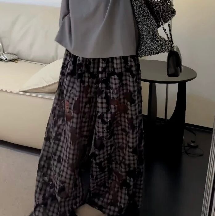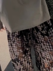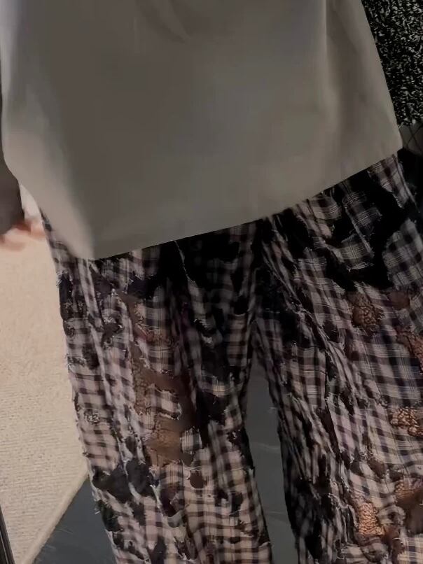 PT-0087 ダメージ レース チェック柄 パンツ レディース カジュアル シンプル 可愛い お洒落 きれいめ