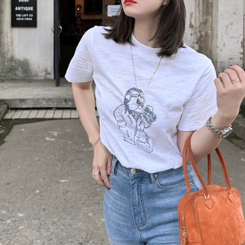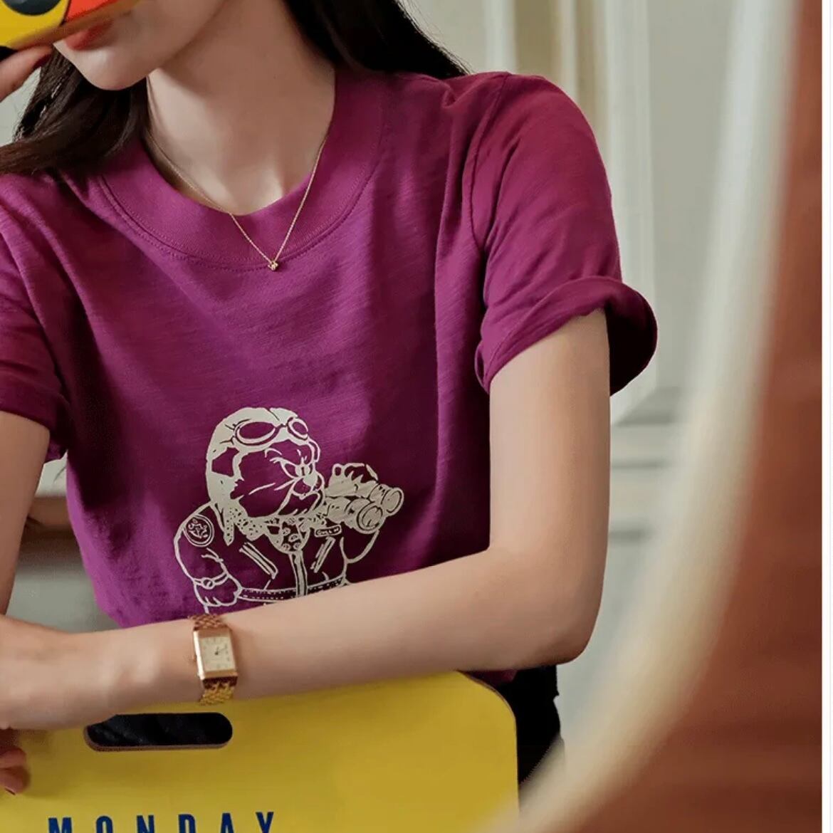 TS-0210 ブルドッグキャラ カラー 半袖 Tシャツ トップス レディース カジュアル シンプル 可愛い お洒落 きれいめ