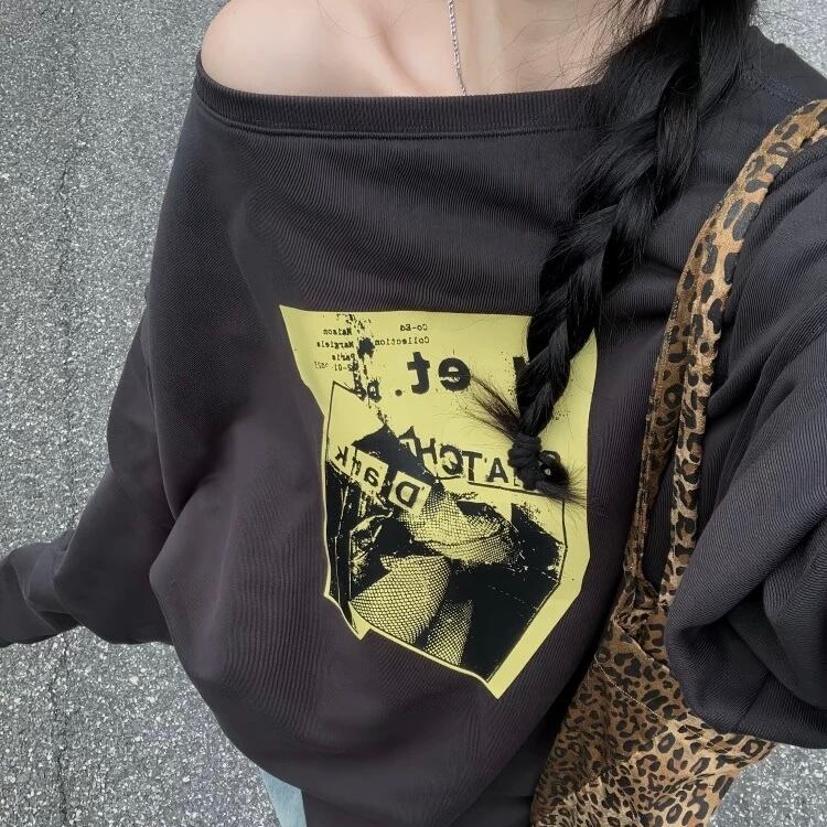 TS-0231 ルーズネック オフショル プリント 長袖 トレーナー レディース カジュアル シンプル 可愛い お洒落 きれいめ