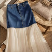 SK-0054 チュール デニム スカート ロング丈 スカート レディース カジュアル シンプル 可愛い お洒落 きれいめ