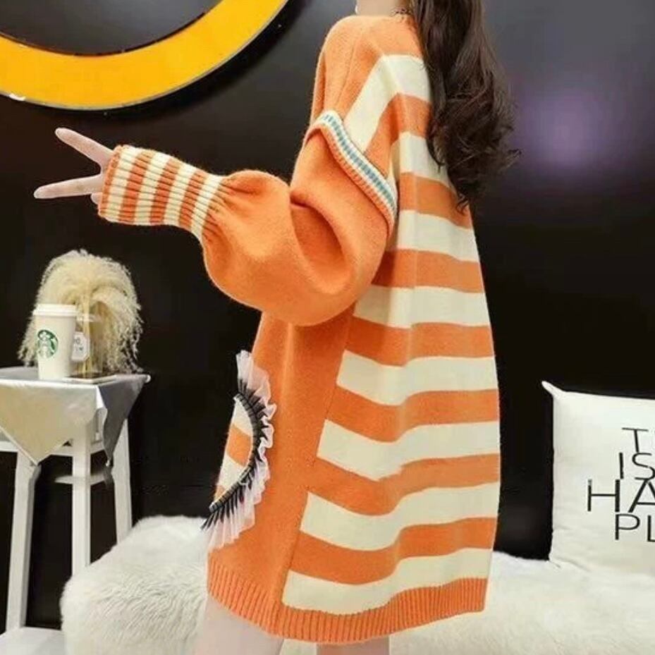 ◻️ボーダー×レースハートポイントロングニット