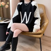 NT-0308 W バイカラー ニット 長袖 レディース カジュアル シンプル 可愛い お洒落 きれいめ