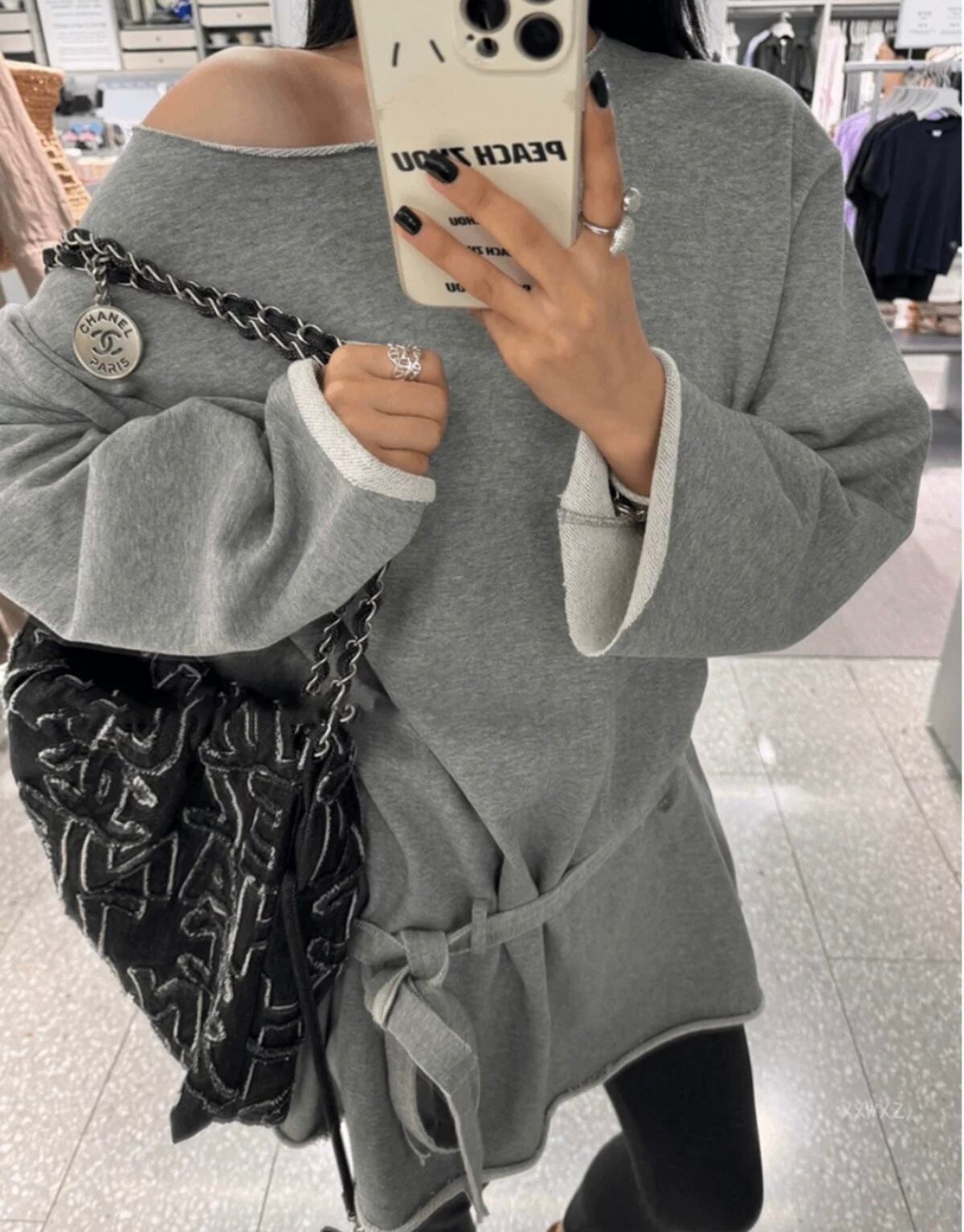 TS-0234 ルーズ 切りっぱなし ウエストマーク ロング 長袖 レディース カジュアル シンプル 可愛い お洒落 きれいめ