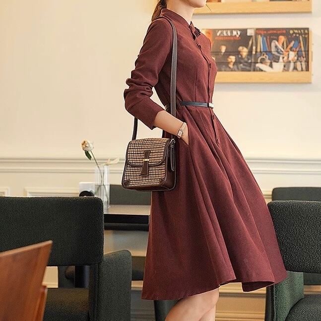 OP-0181 上品 スカート 膝丈 シャツ ワンピース レディース カジュアル シンプル 可愛い 大人 お洒落 きれいめ