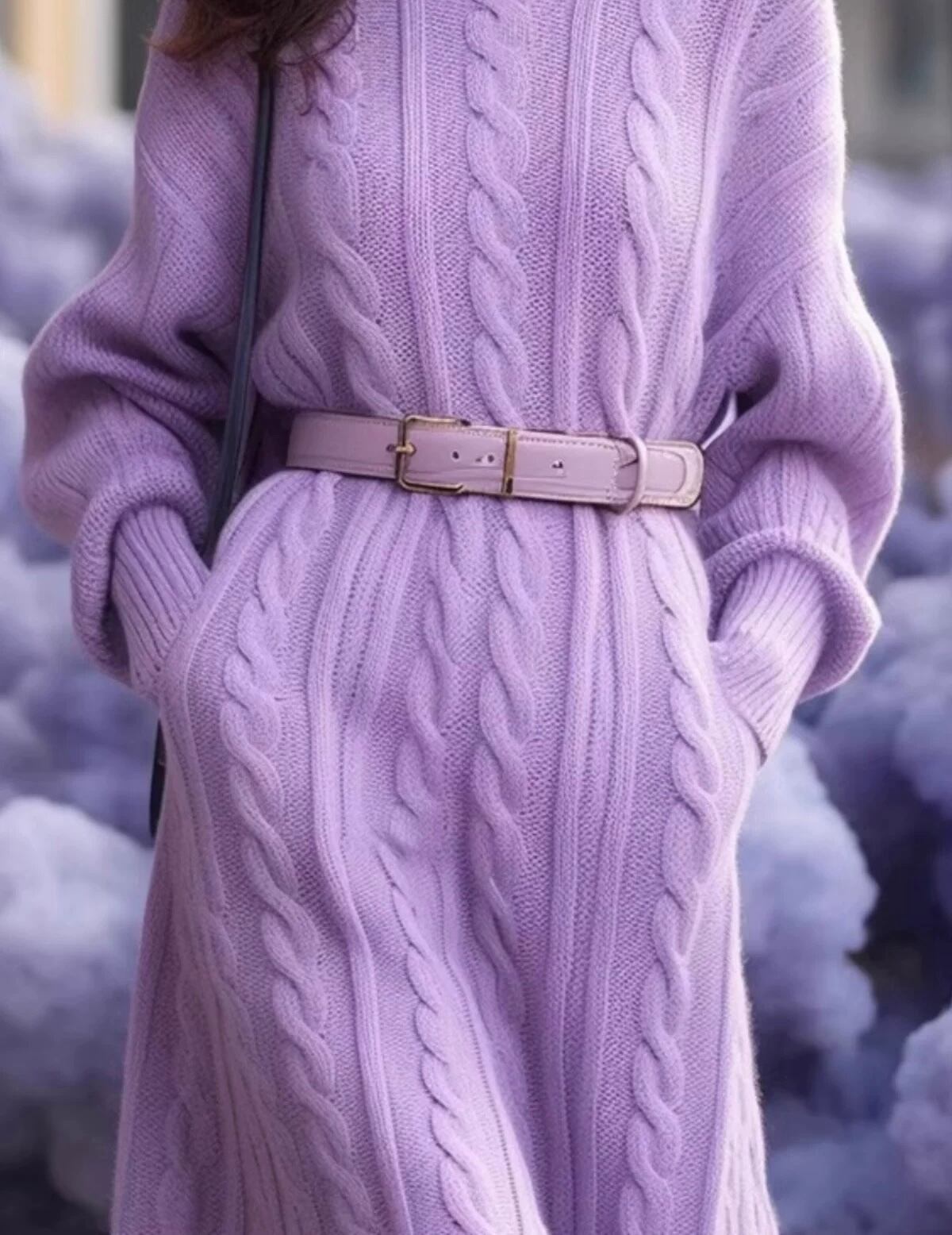 ◻️パープルウエストマークニットワンピース