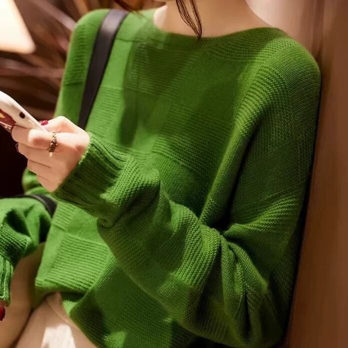 NT-0316 ラウンドネック ブロックチェック ニット レディース カジュアル シンプル 可愛い お洒落 きれいめ 大人