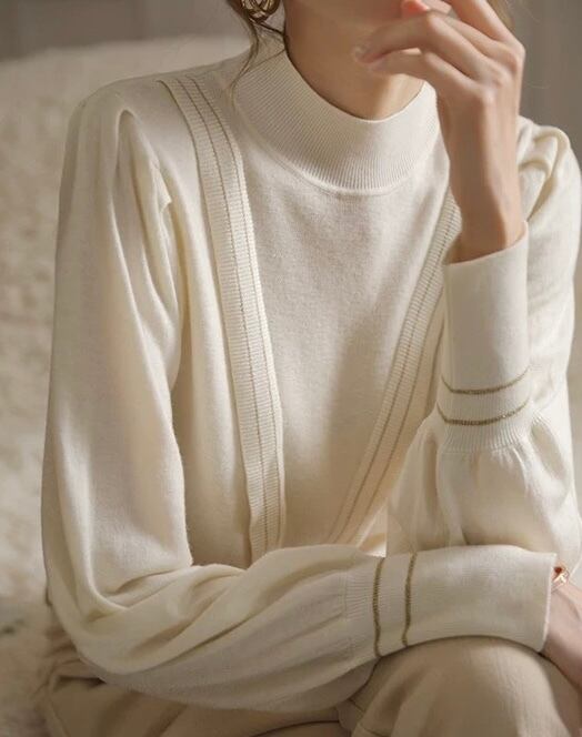 NT-0318 グリッターライン ラウンドネック ニット レディース カジュアル シンプル 可愛い お洒落 きれいめ 大人