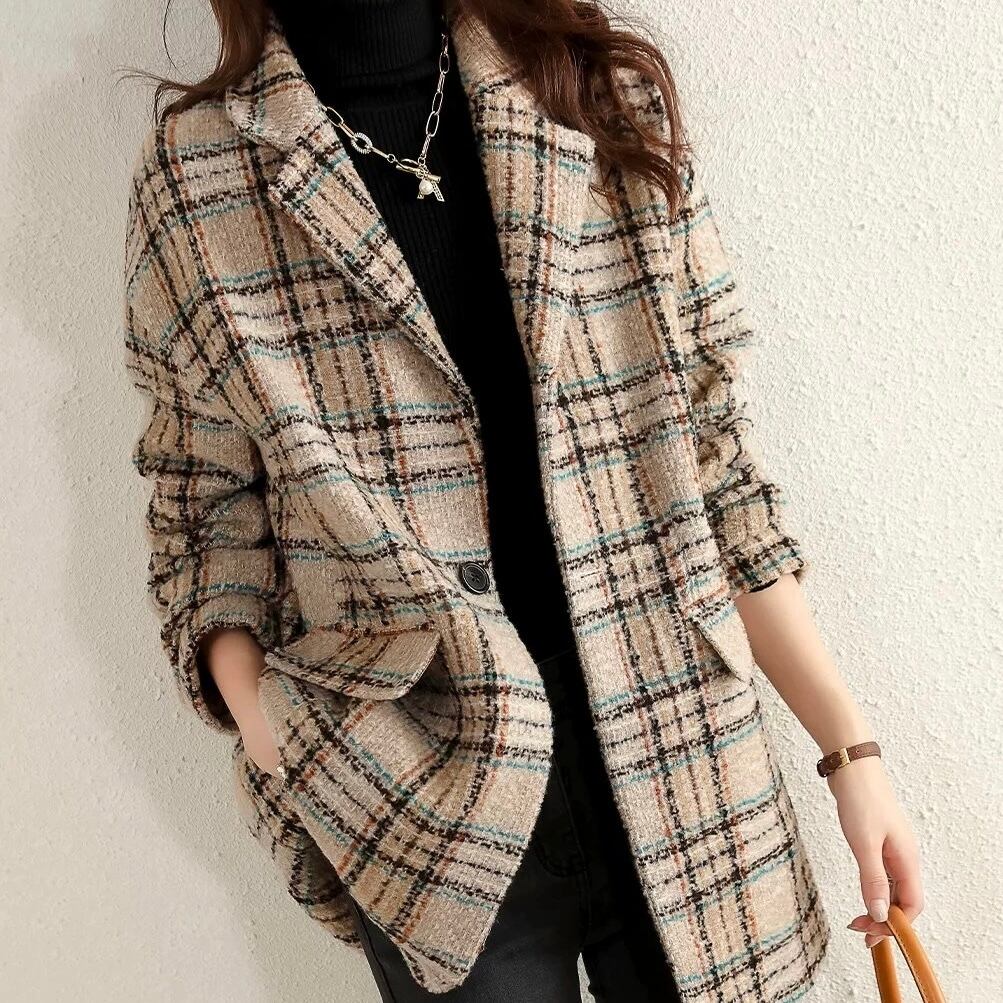 JK-0103 チェック柄 ジャケット 上品 長袖 レディース カジュアル シンプル 可愛い お洒落 きれいめ