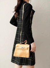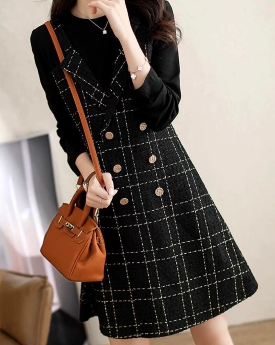 OP-0189 ツーピース ダブルチェック柄 上品 スカート 膝上丈 ワンピース レディース カジュアル シンプル 可愛い 大人 お洒落 きれいめ
