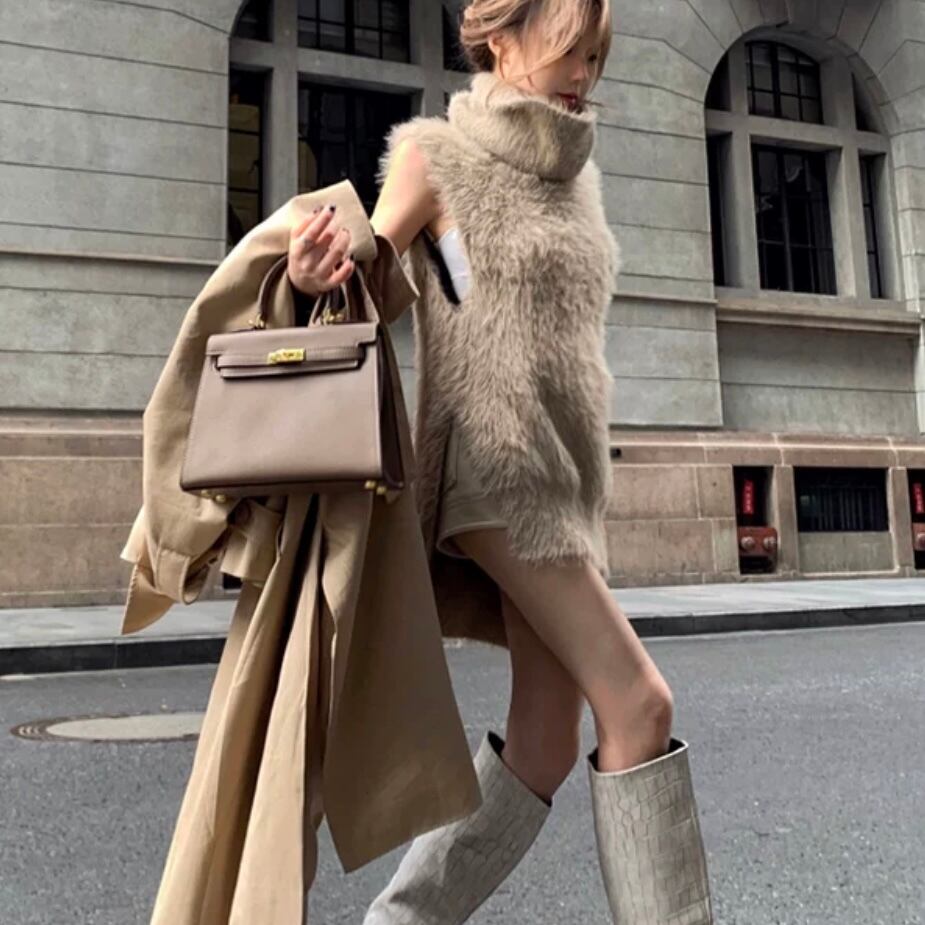 NT-0324 ふわふわ ベスト ハイネック ニット レディース カジュアル シンプル 可愛い お洒落 きれいめ 大人