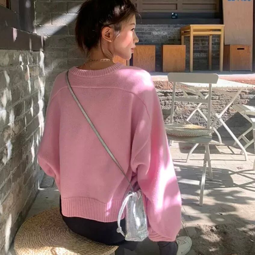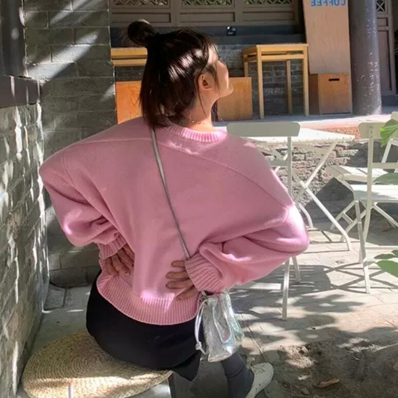 NT-0326 パステル ピンク フレア袖 ラウンドネック ニット レディース カジュアル シンプル 可愛い お洒落 きれいめ 大人