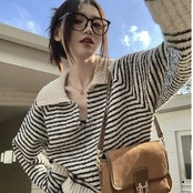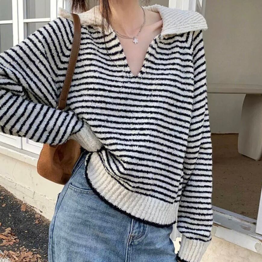 ◻️ストライプ柄襟付きニット