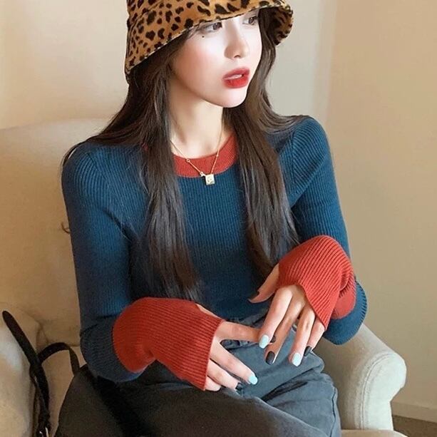 NT-0332 バイカラー ニット レディース カジュアル シンプル 可愛い お洒落 きれいめ 大人