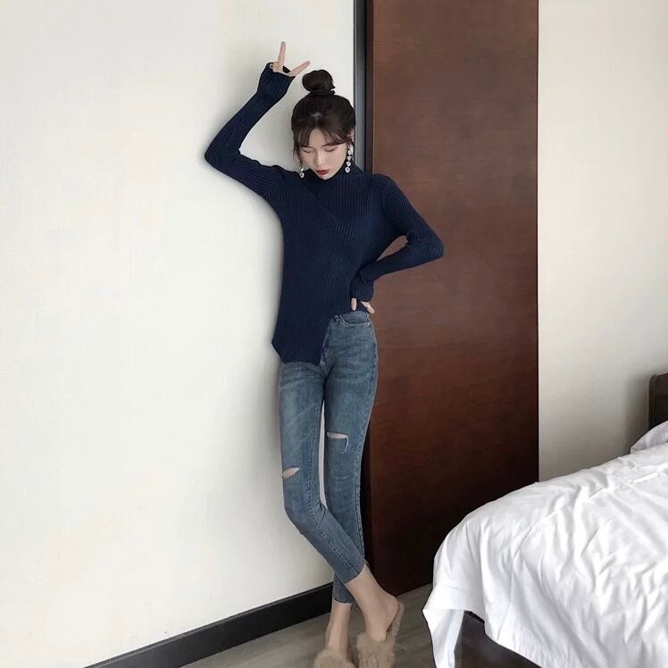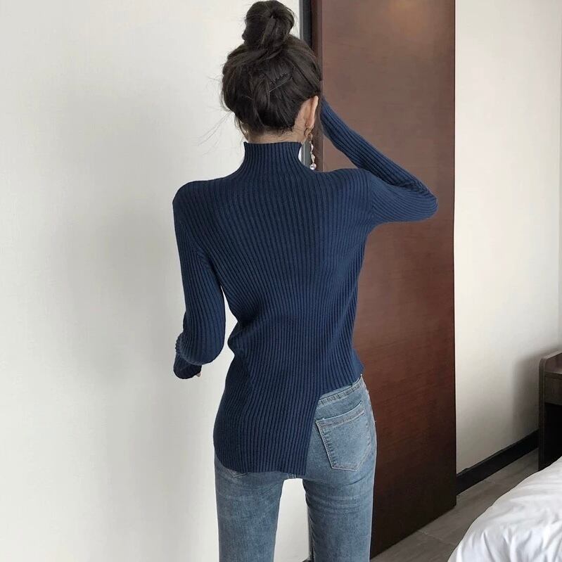 NT-0335 ハイネック アシメ ニット レディース カジュアル シンプル 可愛い お洒落 きれいめ 大人